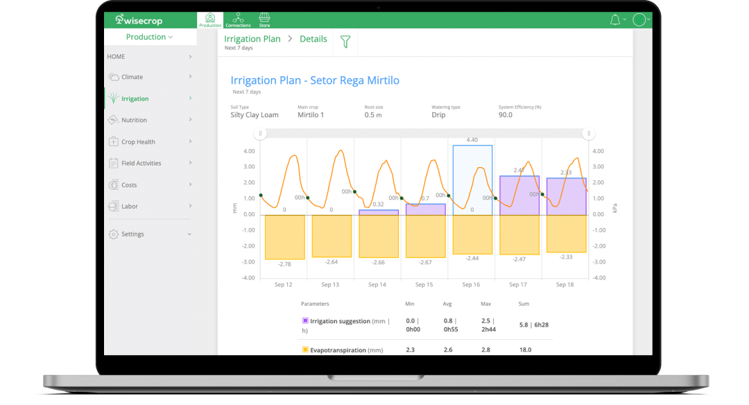 Criação de plano de rega ajustado às necessidades reais da cultura.